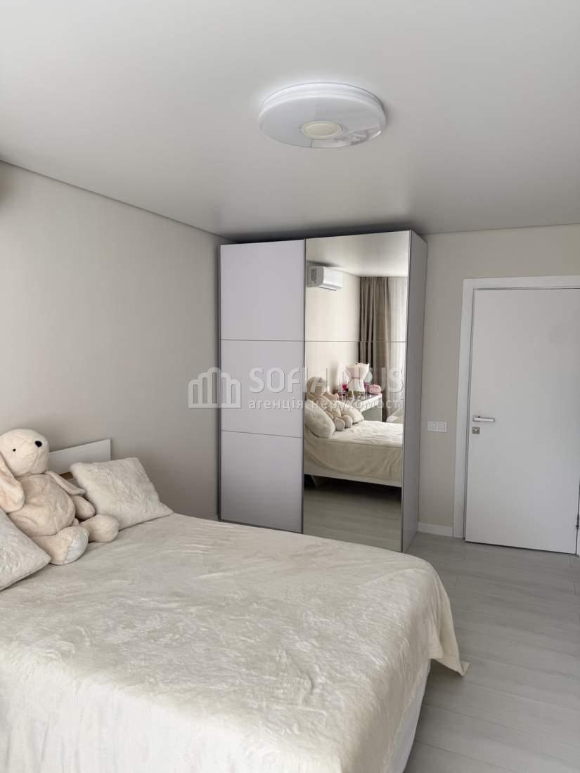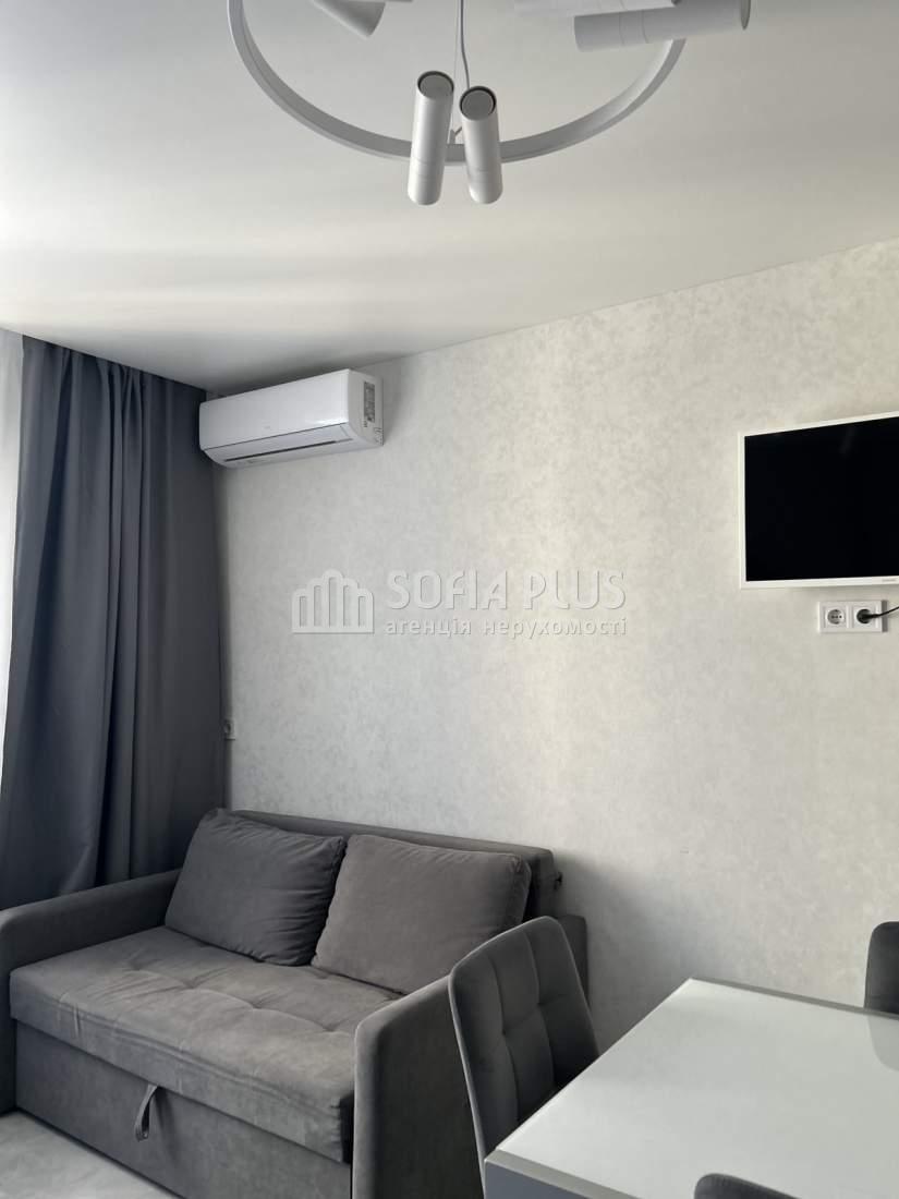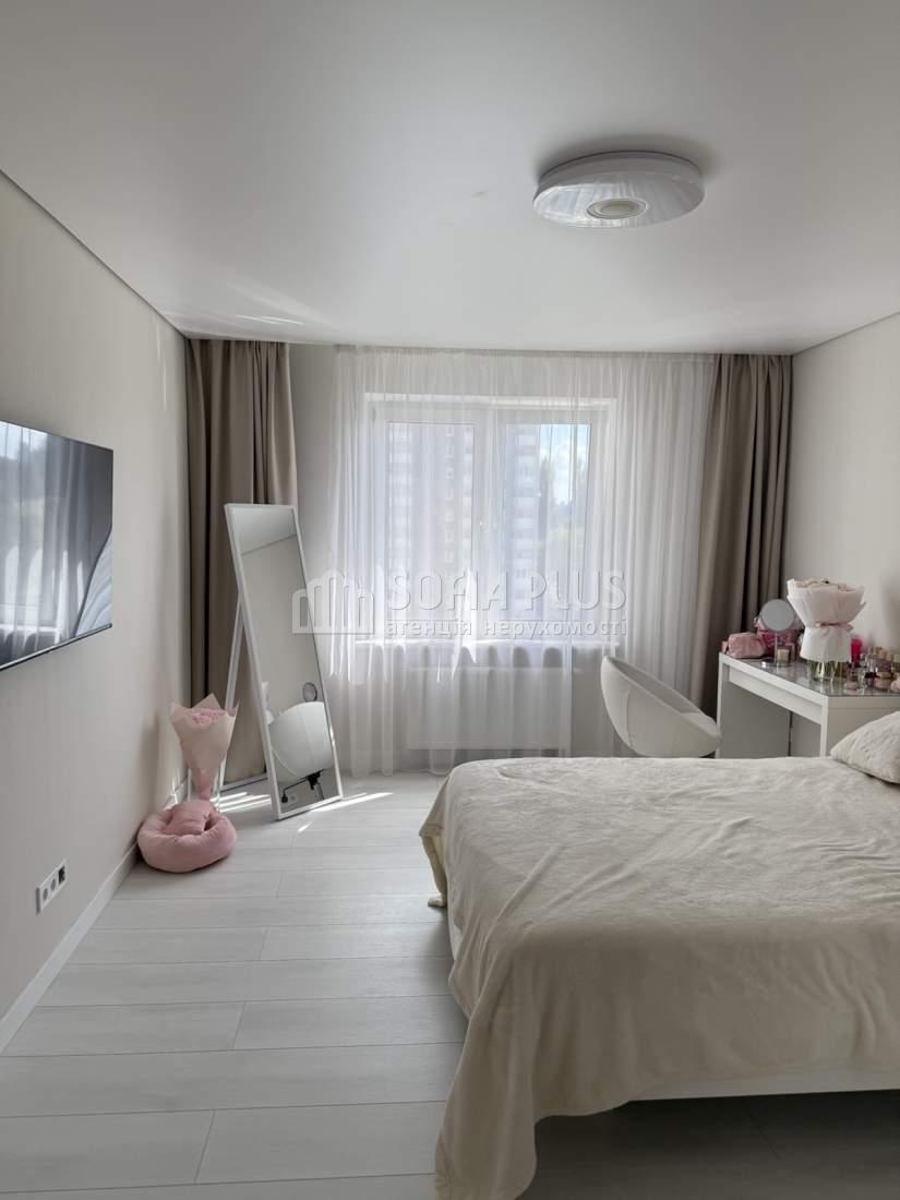Продам 2-кімнатну квартиру на 8 поверсі 25-поверхового нового цегляного будинку в Оболонському районі на вулиці Коноплянська 22А (ЖК Навігатор-2). Площі: загальна - 74 кв.м., житлова - 42 кв.м, кухня - 18 кв.м. Дизайнерський ремонт. В кімнатах ламінат, на кухні, в коридорі і санвузлі плитка. 3 кондиціонери, бойлер. Лоджія засклена. Санвузол окремий. Тепла підлога. Встановлені лічильники тепла та електро (день, нічь). Замінена електрика з окремими автоматами на техніку. Квартира продається з меблями та побутовою технікою. Розвинена інфраструктура.